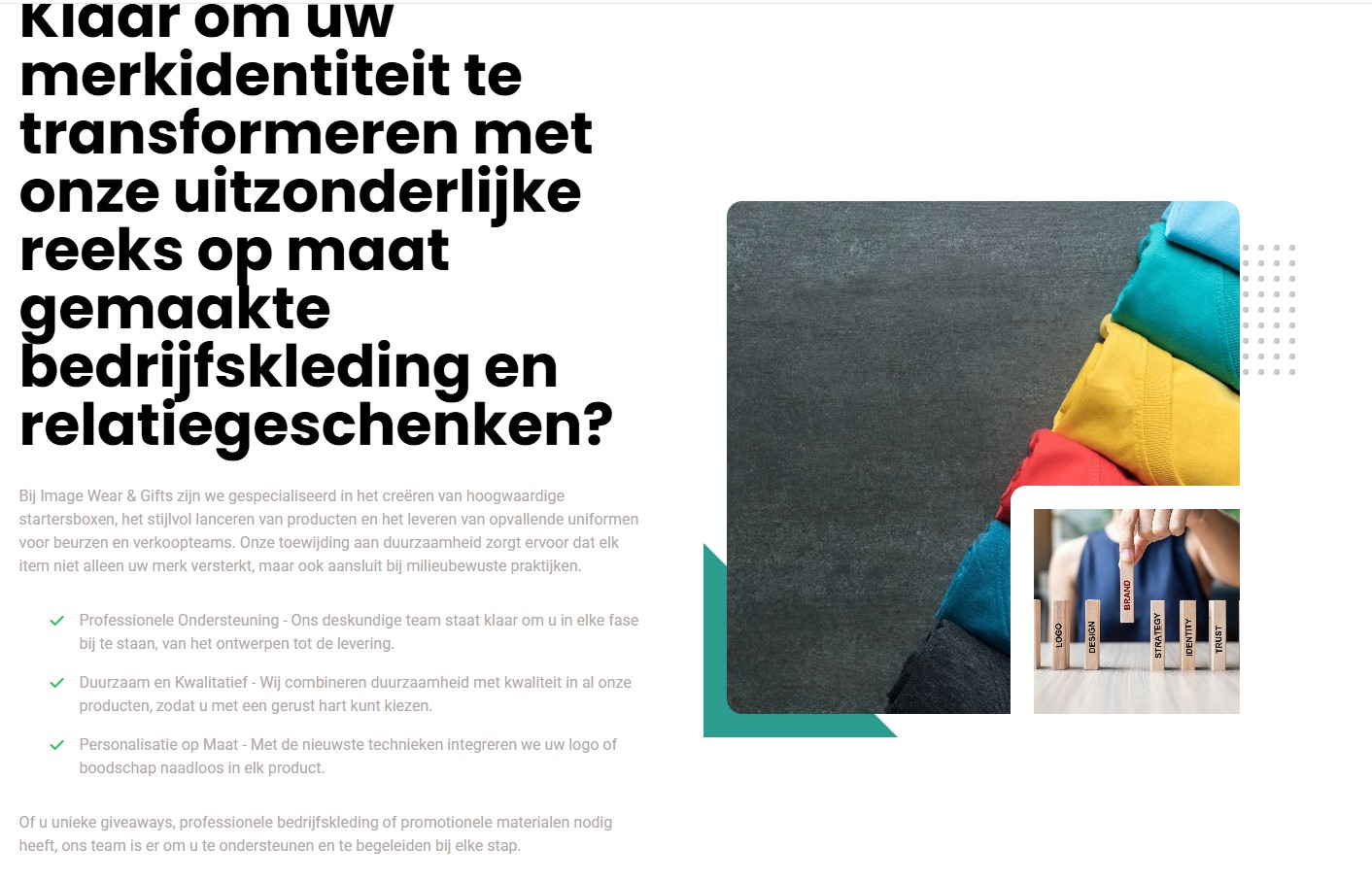 Image Wear & Gifts combineert creativiteit, duurzaamheid, kwaliteit en klantgerichtheid om bedrijven te voorzien van kleding en geschenken die zowel praktisch als onvergetelijk zijn.